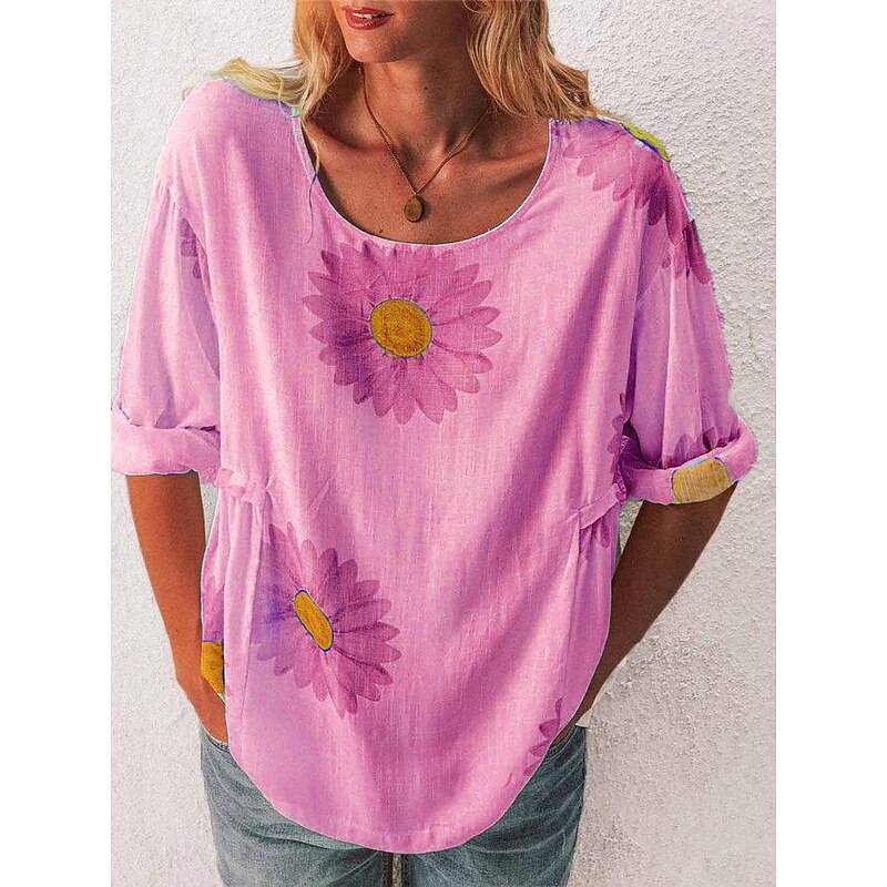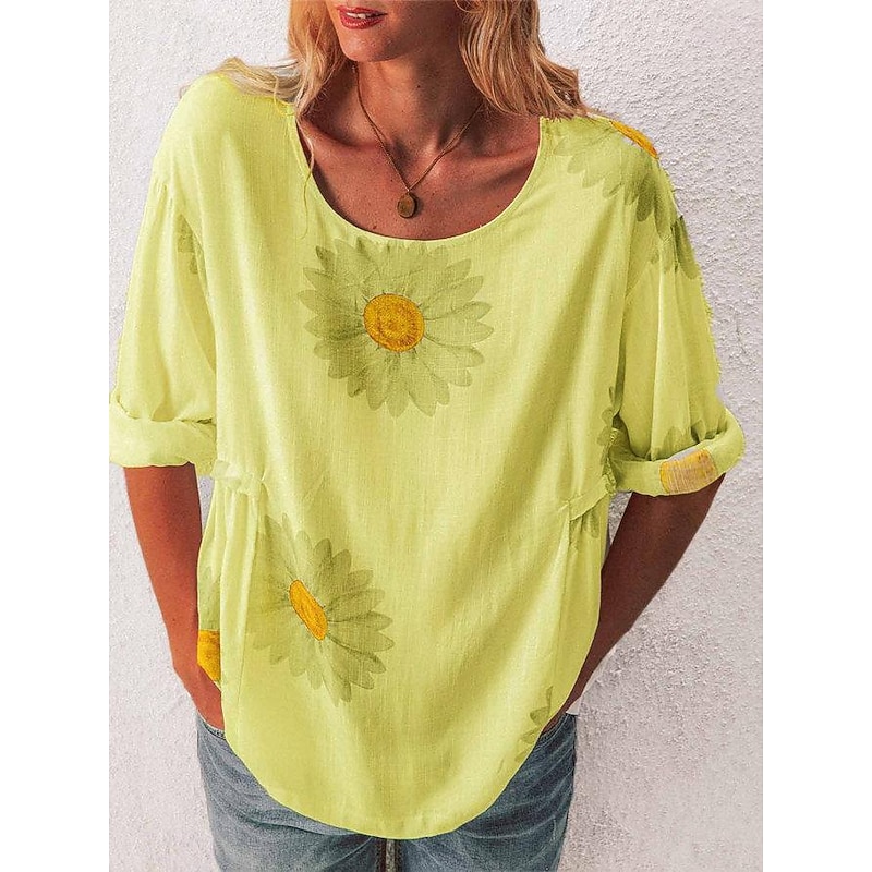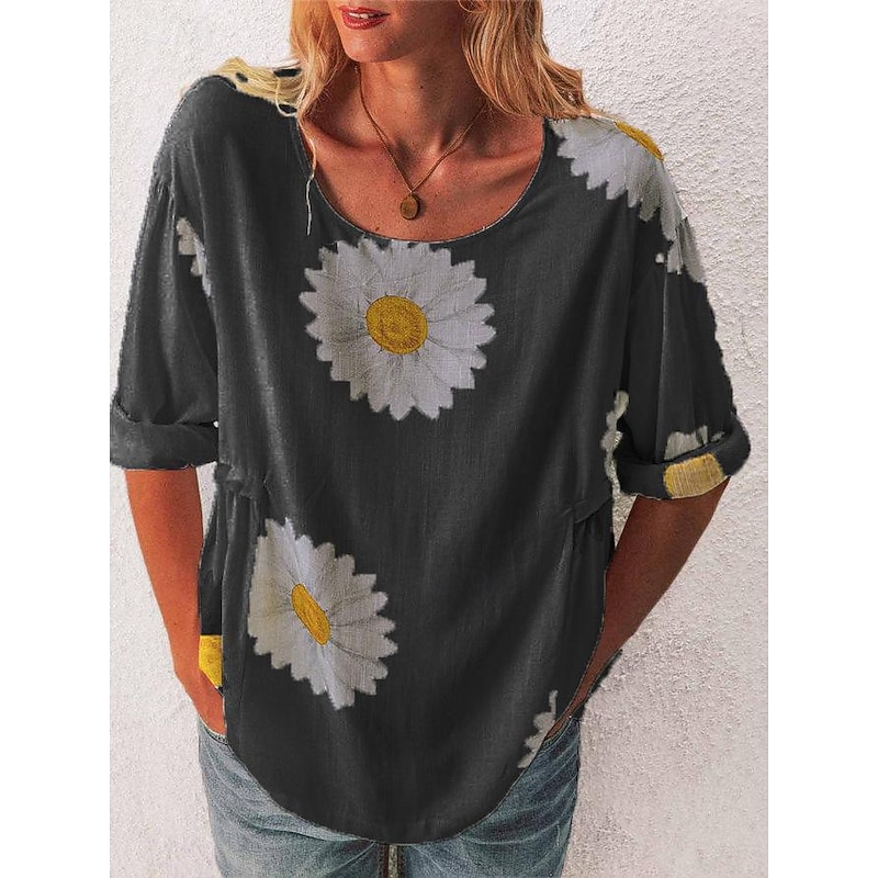 More information about Women's Shirt Blouse Floral Fashion Long Sleeve Round Neck Regular Tops Casual Holiday Buttons Print Black White Yellow Pink Green Spring & Fall