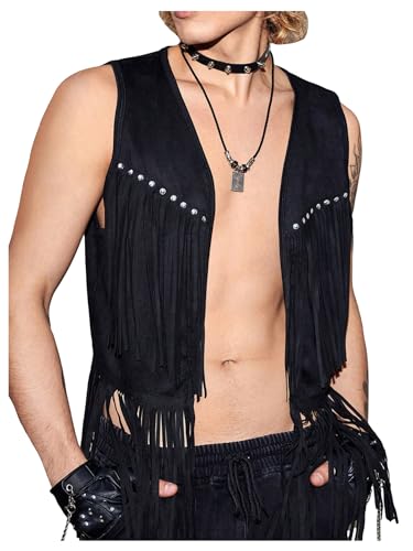 More information about GORGLITTER Men's Fringe Western Vest Open Front Cowboy Vest Jacket 70s Outfits Tassel Tops