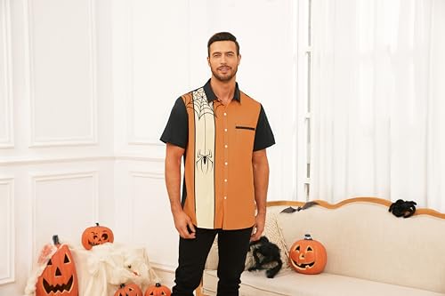 WHO IN SHOP Men's Halloween Shirts Cute Scary Horror Short Sleeve Button Up Shirt 5