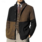 More information about Men's Sweater Cardigan Sweater Ribbed Knit Regular Tops Color Block Knitted Color Block Shawl Collar Vacation Fashion Casual Daily Wear Clothing Apparel Spring & Fall Black Brown M L XL