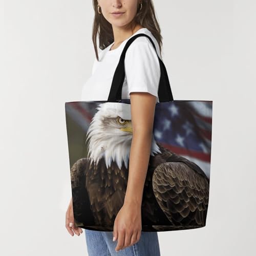 • High quality material: The American Bald Eagle tote bag is made of high-quality polyester fabric, which is sturdy and durable, making it the ideal fabric for shopping bags. Suitable for supermarket shopping, markets, seaside vacations, camping, or travel.