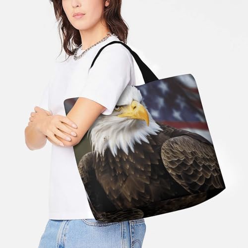 HOT ! Large Grocery Bags Beach Tote American Bald Eagle Shopping Bag for Women Shoulder Bag for Travel Work Handbag