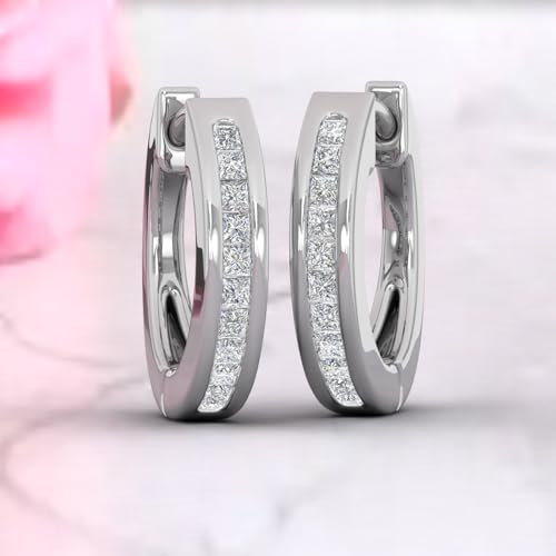 HOT ! 1/5 to 1/4 Carat Channel Set Princess cut Diamond Huggies Earrings in 14K Solid Gold (I1-I2 Clarity)