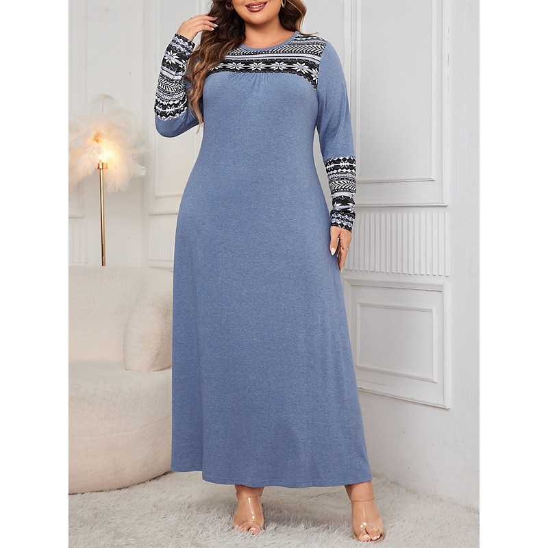HOT ! Women's Plus Size Casual Dress Floral Crew Neck Long Sleeve Spring Fall Elegant Fashion Modern Casual Maxi long Dress Daily Holiday Dress