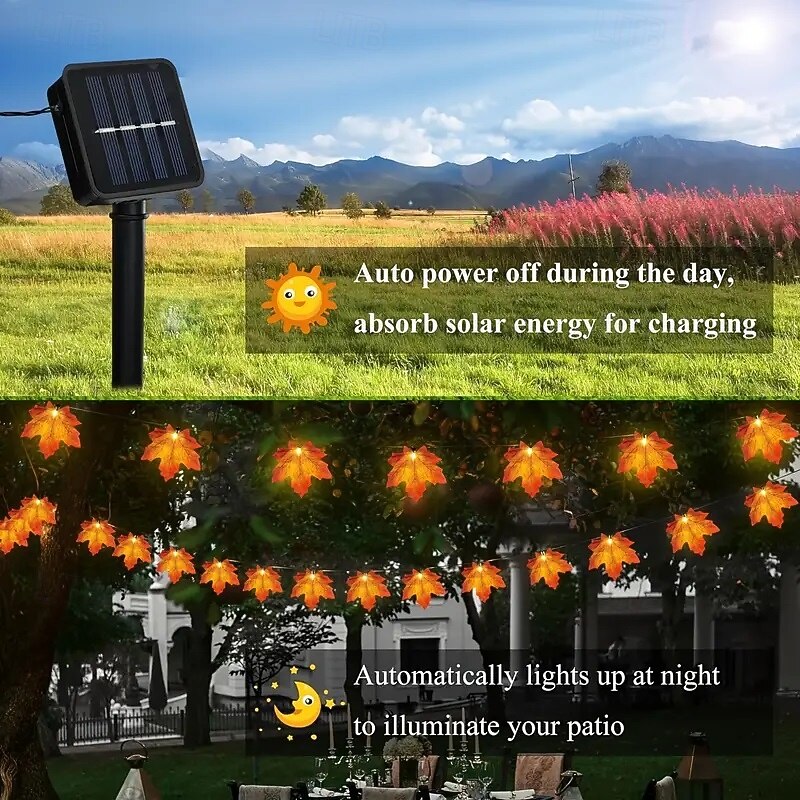 $14.49 - Solar Powered Artificial Maple Leaf Garland String Lights 6.5m 30LEDs Thanksgiving Halloween Autumn Leaves Decoration Outdoor Indoor Garden Patio Fireplace for Holiday Atmosphere Lighting 2025. Shop for cheap Halloween Outdoor online? Buy at lightinthebox.com on sale today!