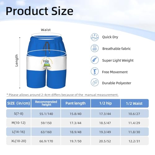 More information about Flag of Nicaragua Youth Beach Pants, Soft and Breathable, with Drawstring Waist, Suitable for Sports and Leisure.