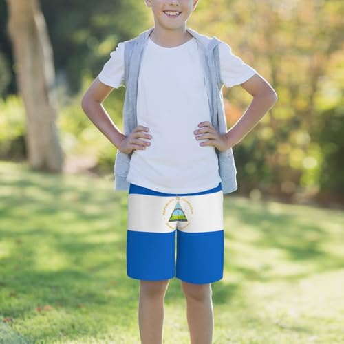 HOT ! Flag of Nicaragua Youth Beach Pants, Soft and Breathable, with Drawstring Waist, Suitable for Sports and Leisure.