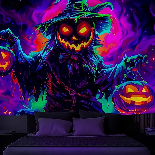 $13.99 - Halloween Blacklight Wall Tapestry – UV Reactive Evil Pumpkin with Glowing Jack-o'-Lantern, Neon Colors Spooky Field Scene, Glow in the Dark Horror Backdrop for 2025 Halloween Party Decoration 2025. Shop for cheap Halloween Wall Tapestries online? Buy at lightinthebox.com on sale today!