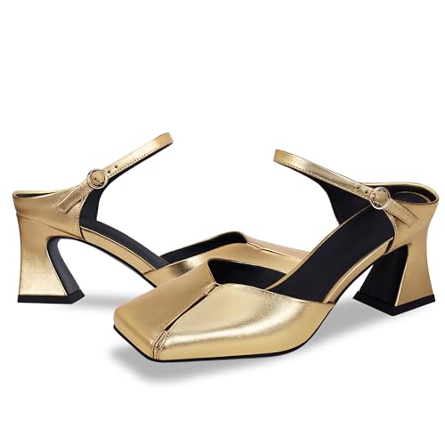 More information about Women's Buckle Strap Square Closed Toe Slip On Block Mule Heels Comfort Dress Party Pumps