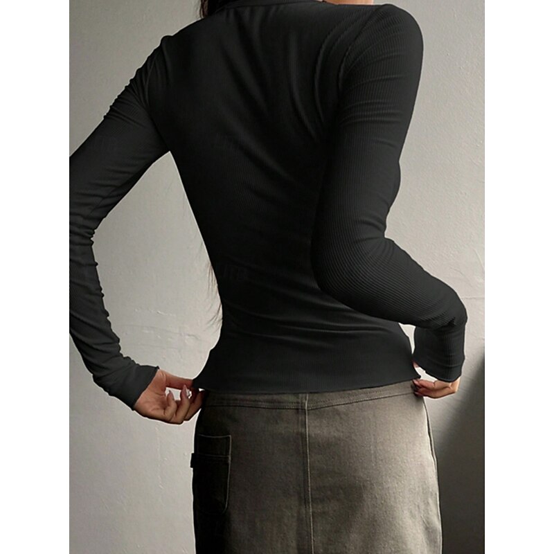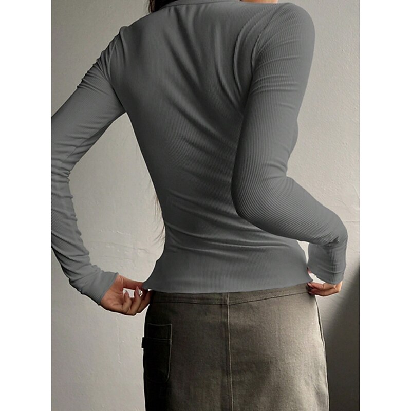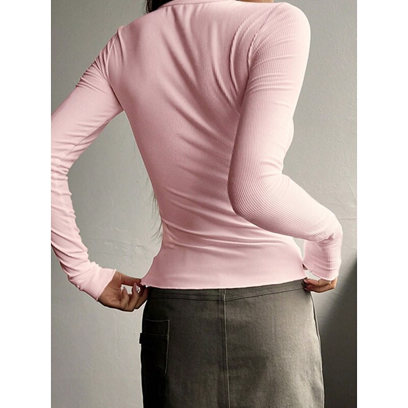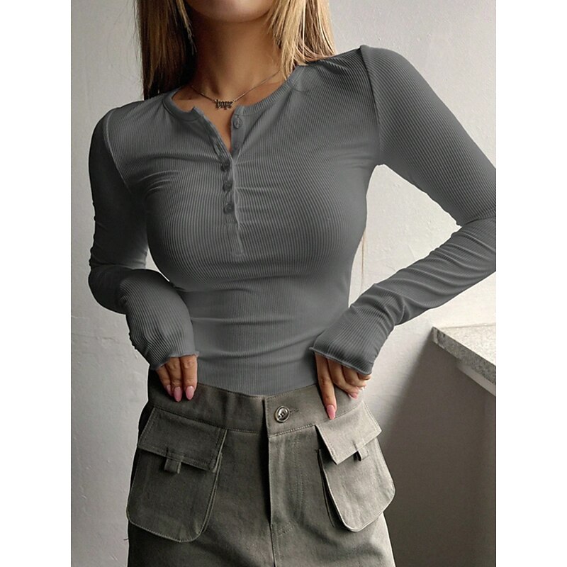 Women's Blouse Solid Color Stylish Basic Casual Long Sleeve Crew Neck Regular Tops Daily Buttons Black White Pink Green Gray Summer Spring Fall 13