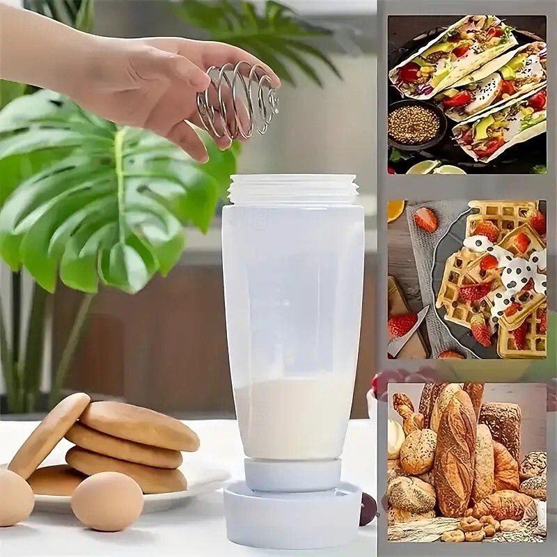 Multipurpose Pancake Batter Dispenser with Whisk Ball, Ideal for Cupcakes, Muffins, and Pancakes, Food-Safe Plastic Kitchen Gadget for Easy Baking and Cooking 14