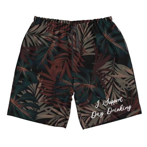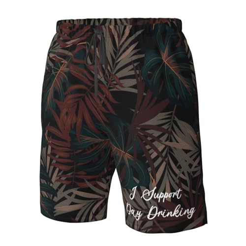 I Support Day Drinking Men's Casual Board Shorts - Elastic Waist Drawstring Swim Trunks Swimwear Bathing Suits, 7