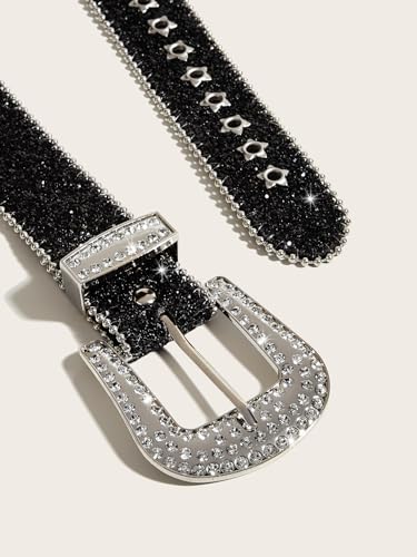 More information about Women Rhinestone Bling Leather Belts for Jeans Western Y2k Punk Star Rivet Sparkly Buckle Belt Fashion Accessories