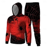 More information about Halloween Men's Spiders 2pcs 3D Sweatshirt Sets Tracksuit Hoodie Sweatshirt Long Sleeve Long pants Hooded Casual Daily Street Athleisure 3D Print Spring Fall Winter Red