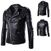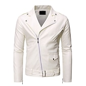 More information about Men's Biker Jacket Faux Leather Jacket Motorcycle Jacket Daily Weekend Thermal Warm Rain Waterproof Fall Solid Colored Streetwear Punk & Gothic V Neck Short Slim Black White Jacket