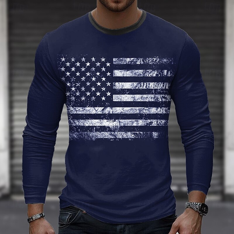 More information about Men's American US Flag T Shirt Long Sleeve T shirt 3D Print Crew Neck Shirt Fashion Outdoor Street Sports Outdoor Black White Blue Summer Spring Clothing Apparel S M L XL XXL XXXL