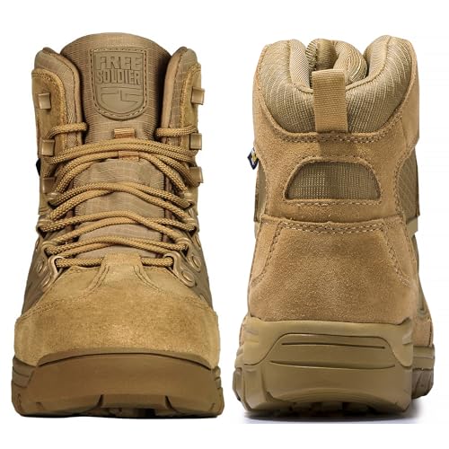 FREE SOLDIER Men's Waterproof Tactical Hiking Boots Military Work Boots Combat Boots(Brown 11.5) 6