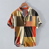 More information about Men's Linen Shirt Popover Shirt Henley Shirt Retro Shirts Vintage Shirt Ethnic Shirt Color Block Vacation Casual Multi Color Short Sleeve Mandarin Collar Summer Spring Clothing Apparel