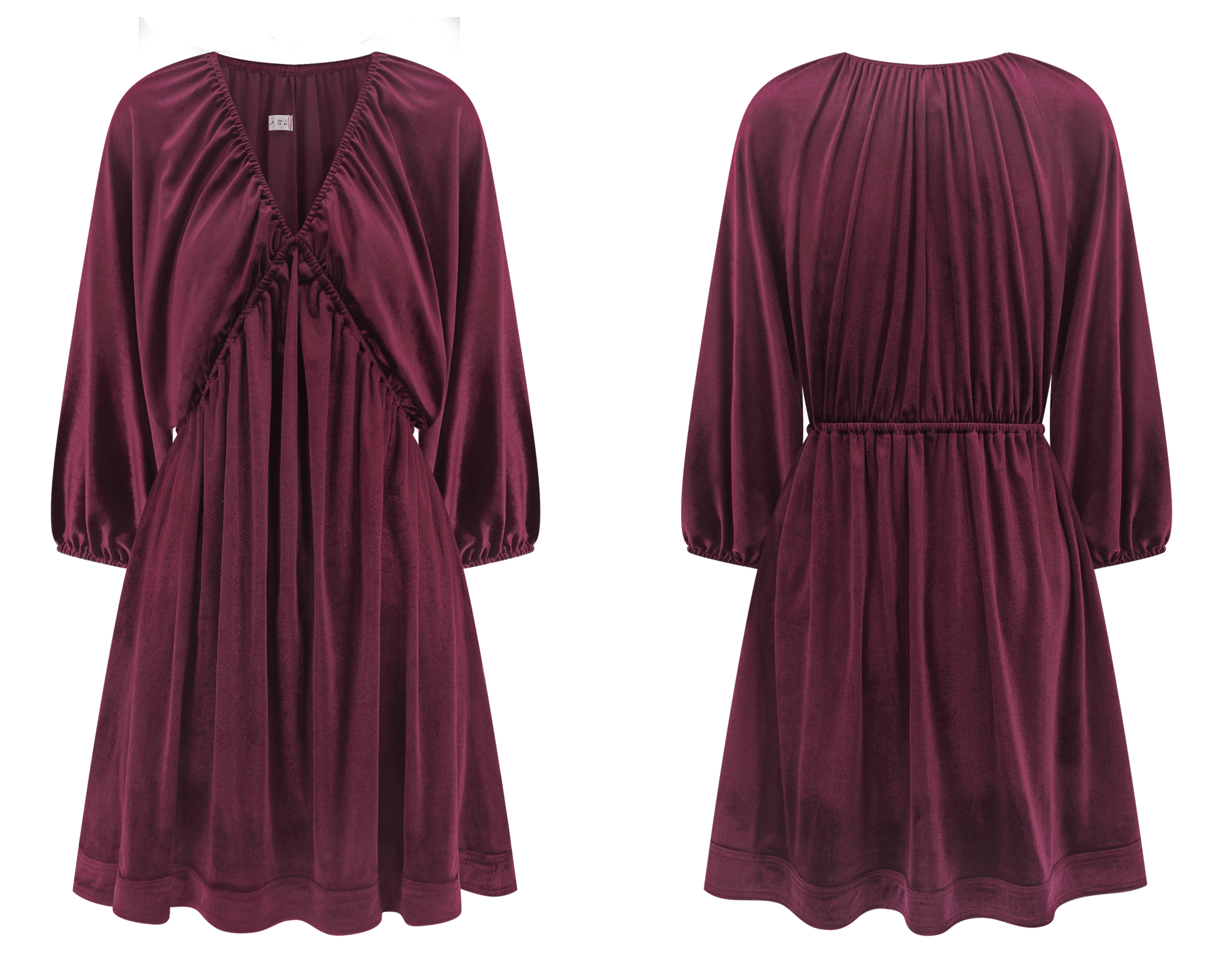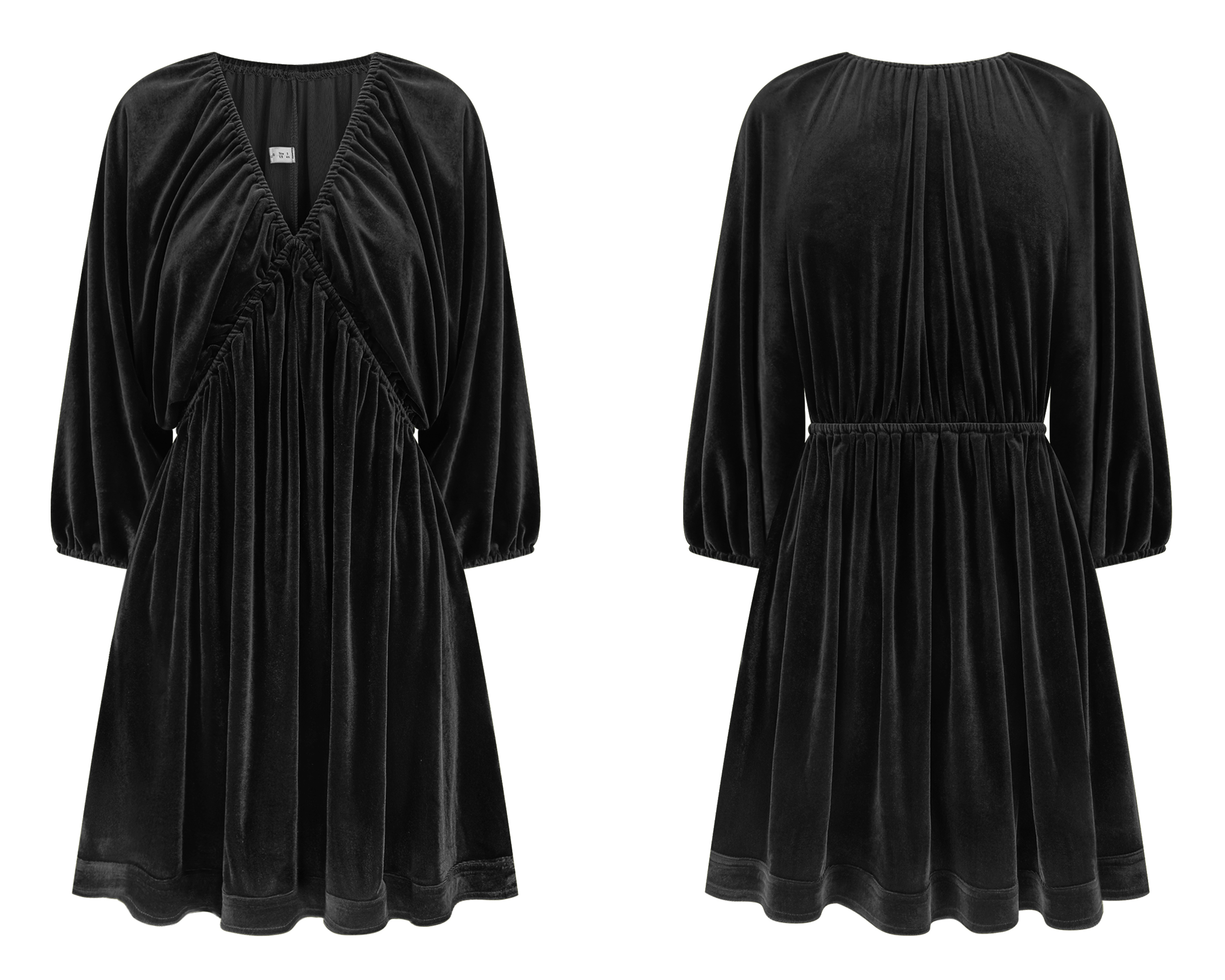 More information about R.Vivimos Womens Fall Velvet Tunic Dress 2024 Trendy Sexy Deep V Neck 3/4 Sleeve Elastic Waist Loose Mini Dress with Pockets