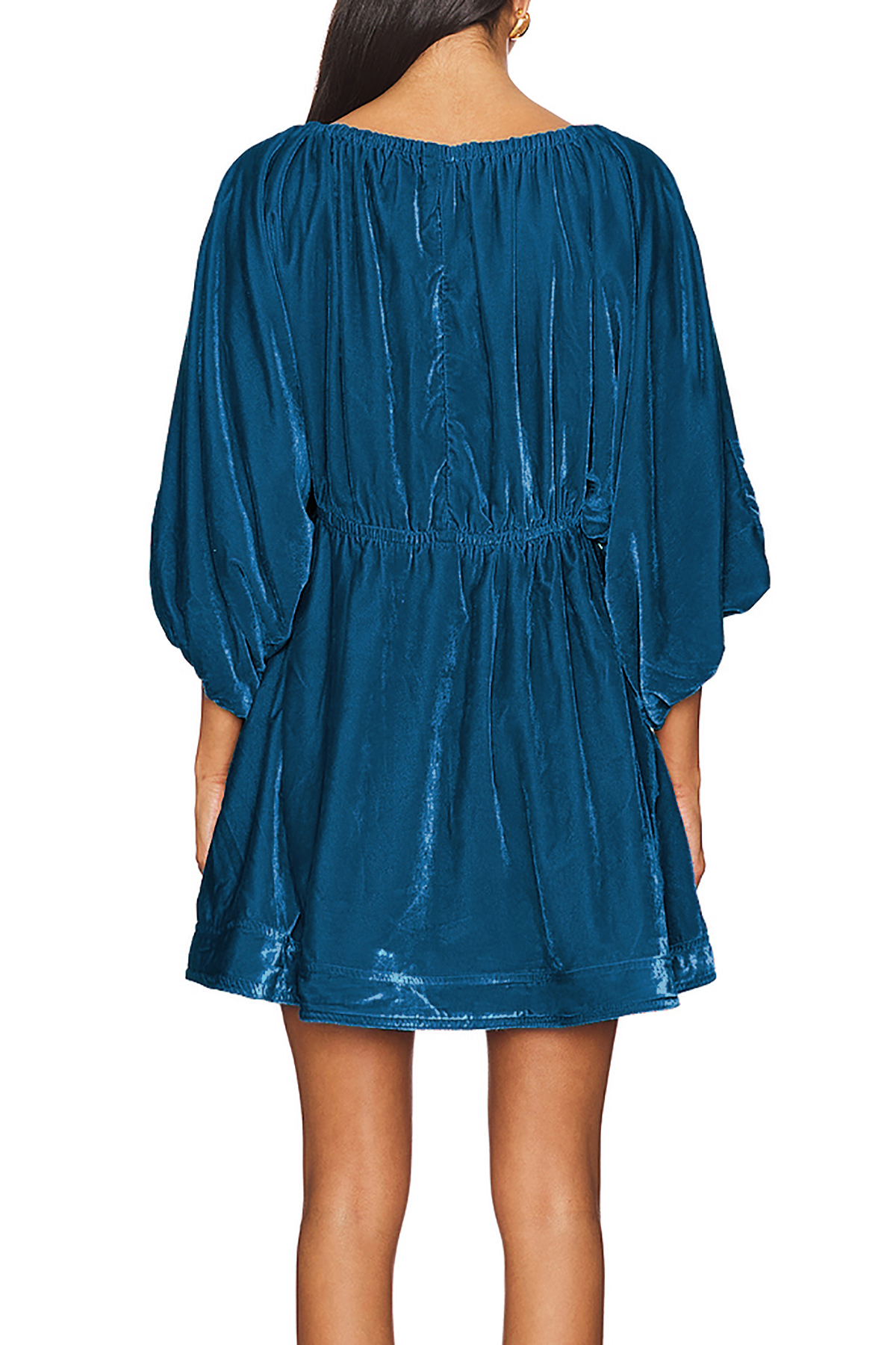 R.Vivimos Womens Fall Velvet Tunic Dress 2024 Trendy Sexy Deep V Neck 3/4 Sleeve Elastic Waist Loose Mini Dress with Pockets 5