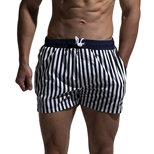 More information about Men's Classical Board Shorts Navy Blue Striped Shorts Trunks Also for Gym