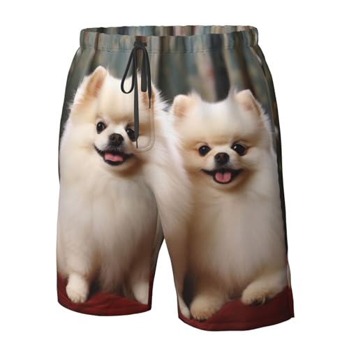 HOT ! Mens Swim Trunks Quick Dry Board Shorts with Pocket Men Swim Shorts Short-haired Pomeranian Dog Beach Bathing Suits
