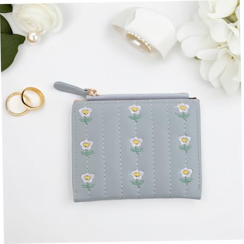 More information about Wallet: Women Cute Coin Purse With Floral Embroidered Pu Bifold Card Holder Compact Two-fold Design For Easy Carrying