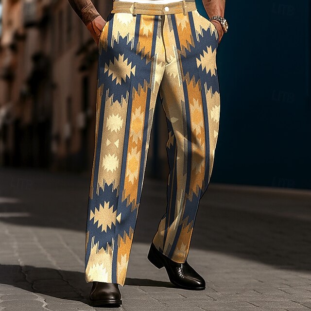More information about Men's Aztec Geometric Pattern Ethnic Trousers Dress Pants Suit Pants Mid Waist Vintage Retro Dailywear Holiday Streetwear Relaxed Fit Flat Front Dress Pants with Side Pockets Spring Fall 3D Print