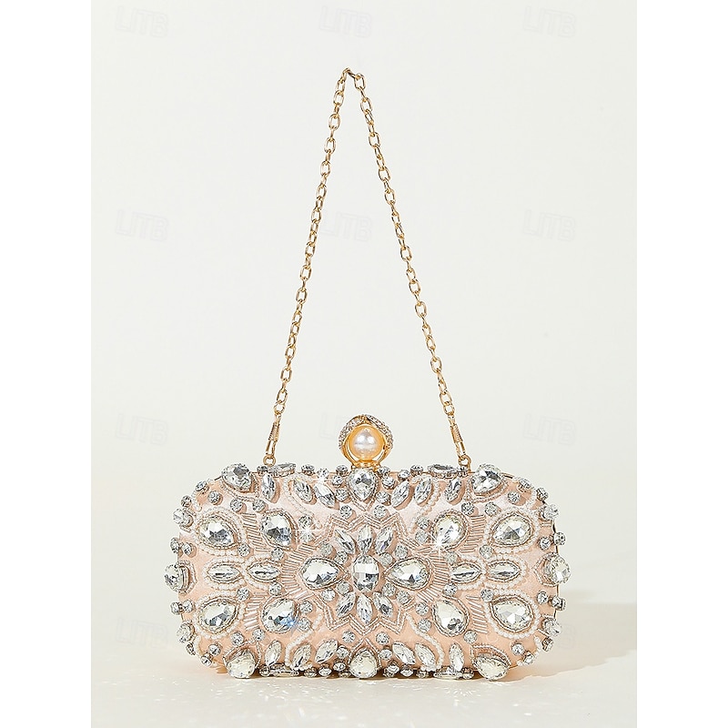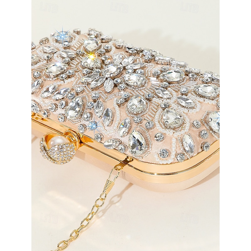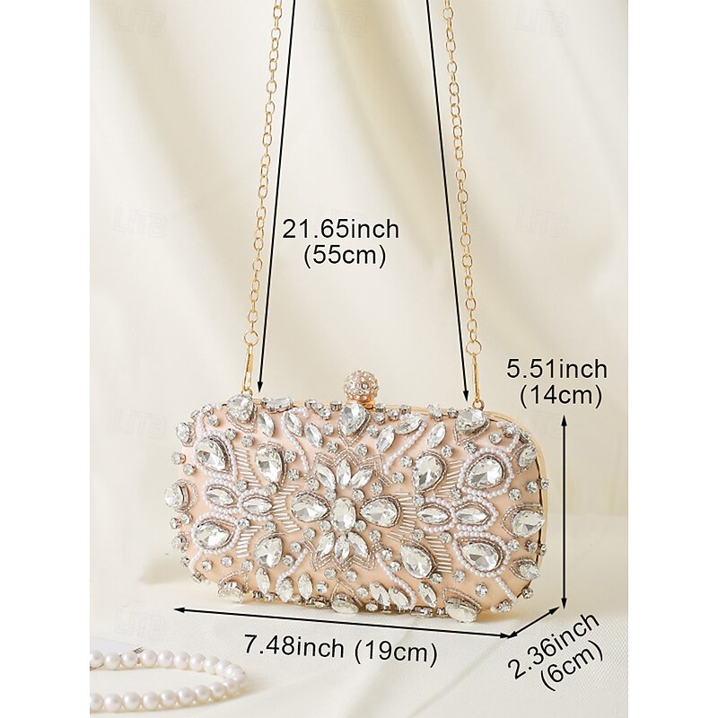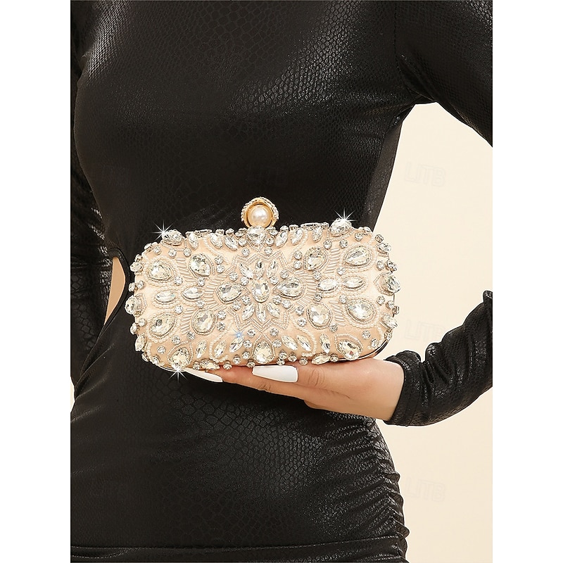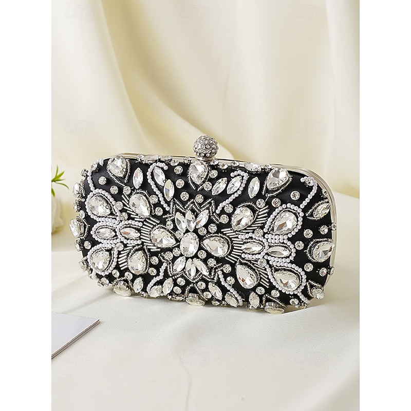 HOT ! Women's Crystal-Embellished Clutch Bag, Elegant Evening Handbag with Pearl and Rhinestone Detailing, Perfect for Weddings, Parties, and Formal Events Black Silver Gold