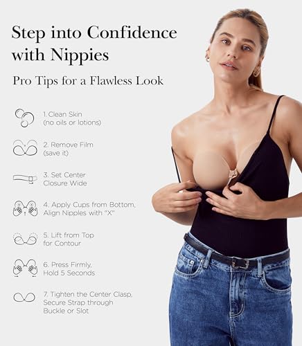 Nippies Silicone Contour Bra - 34C, Caramel - Reusable Strapless Sticky Bra for Women with Shaping Support, Adjustable Front Closure, Deep Round Cups & X Alignment Guide - Backless Outfit Solution 6