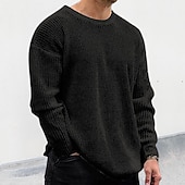 More information about Men's Pullover Sweater Jumper Ribbed Crochet Knit Regular Knitted Solid Color Crew Neck Modern Contemporary Work Daily Wear Clothing Apparel Winter Black White M L XL