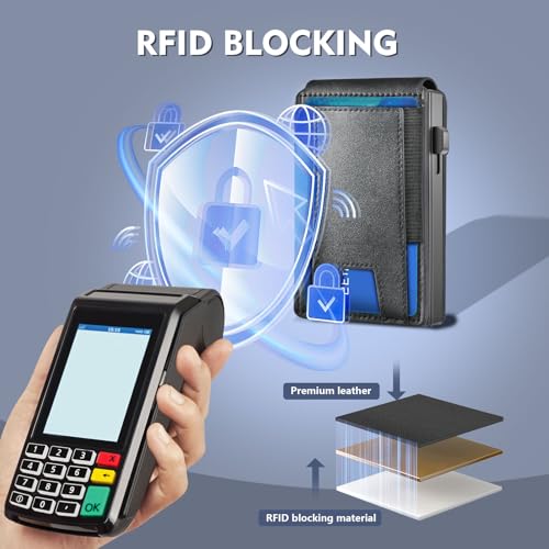 • Practical & Compact: This mens minimalist wallet easily fits into front pockets. The size of this mens slim wallet is 4.3*2.7*0.59 inches and the weight is 0.3 pounds, saying goodbye to the traditional bifold bulky wallet.