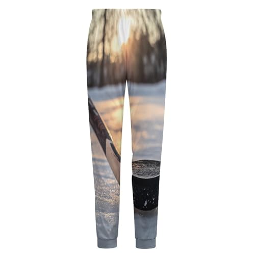 HOT ! Hockey Puck And Stick Sliding Across The Ice Men's Pajamas Pants Lightweight Sleep Lounge Pant Pjs Bottoms Casual Sleepwear