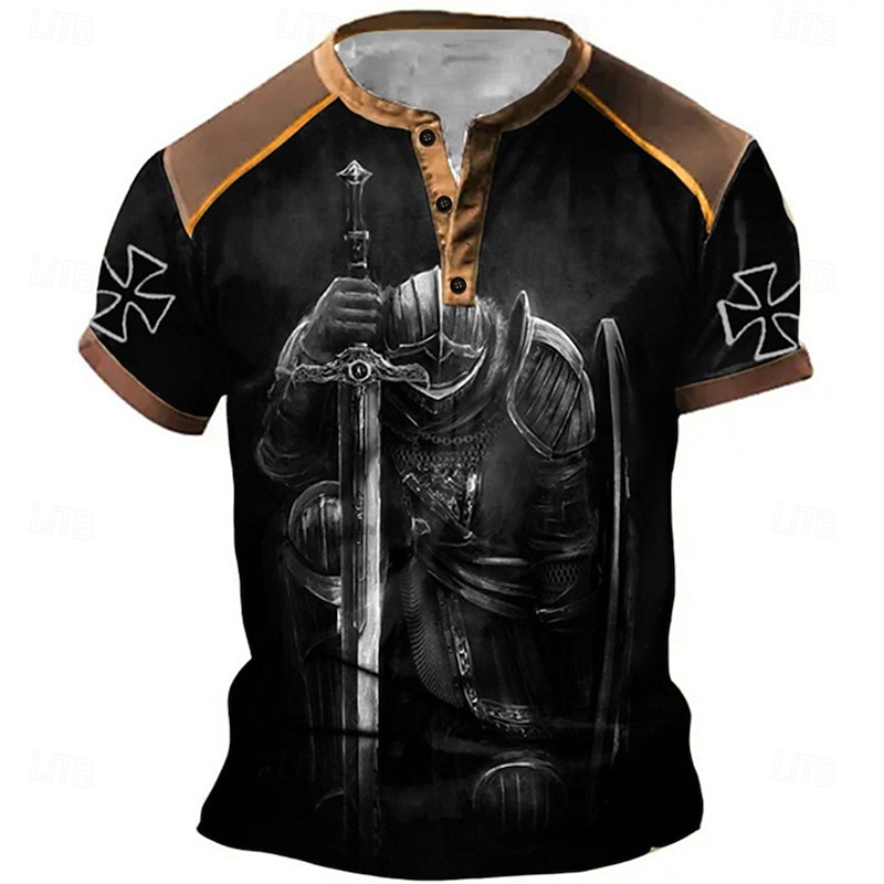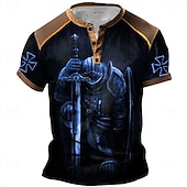 HOT ! Mens Graphic Shirt Knights Templar Prints Fashion Basic Casual Henley Tee Outdoor Daily Going Blue Brown Gray Short Sleeve Cross Black With Sword And Shield Cotton