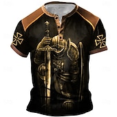 More information about Mens Graphic Shirt Knights Templar Prints Fashion Basic Casual Henley Tee Outdoor Daily Going Blue Brown Gray Short Sleeve Cross Black With Sword And Shield Cotton