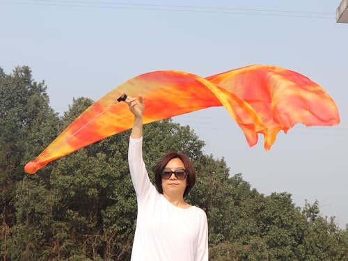 Winged Sirenny 90" Play Silk Scarf with Poi Ball, Colorful Silk Flag Ribbon Streamer, Belly Dance Practice VOI, Single Piece (Flame) 5