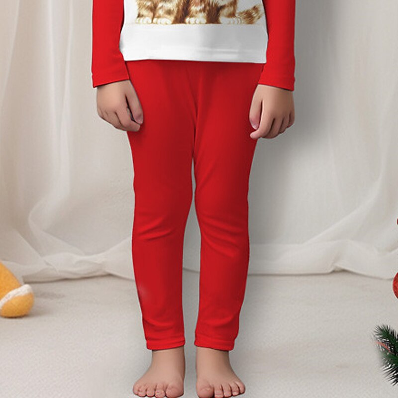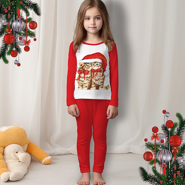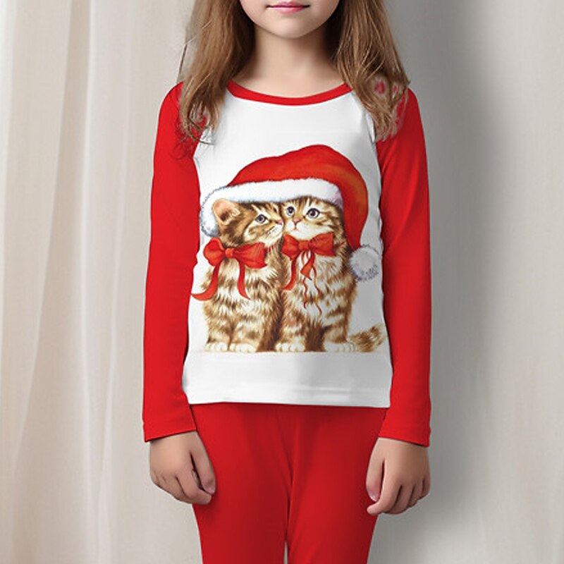 More information about Christmas Girls' 3D Cat Christmas Pajamas Pajama Sets Long Sleeve 3D Print Fall Winter Active Fashion Cute Polyester Kids 3-12 Years Crew Neck Home Causal Indoor Regular Fit