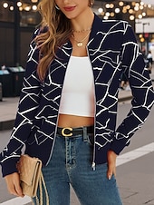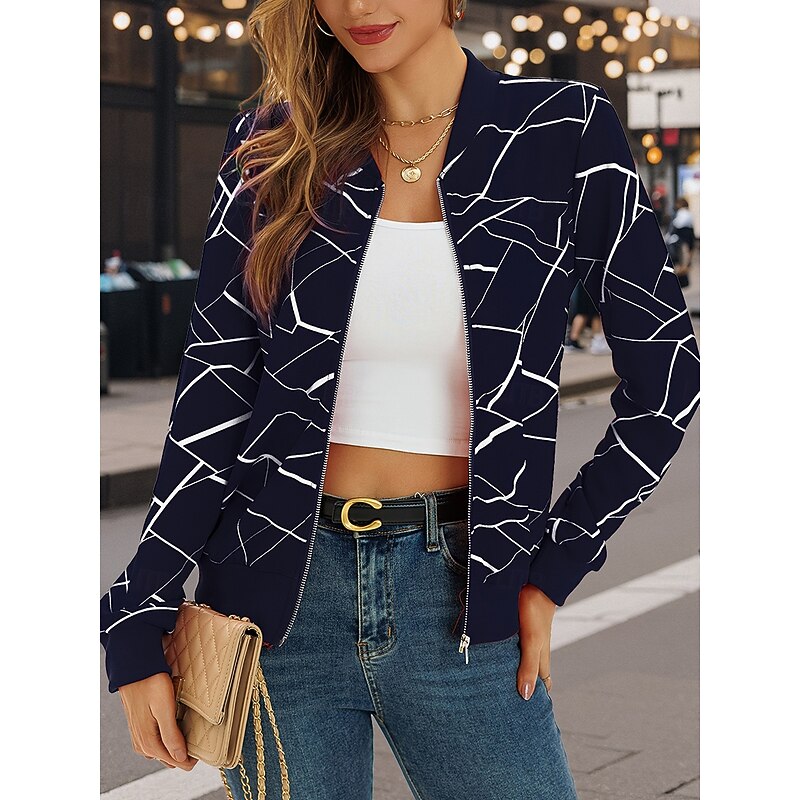 CAD $43.99 - Women's Casual Jacket Warm Quick Dry Zipper Pocket Fashion Daily Casual Abstract Vacation Casual Daily Regular Baseball Collar Regular Fit Long Sleeve Outerwear Navy White Red Spring Fall 2025. Shop for cheap Bomber Jacket online? Buy at lightinthebox.com on sale today!