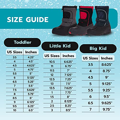 • ✔ COMFY & DURABLE… Made to take a beating, our comfortable kids and toddler snow boots stand up to the harshest environments and keep pace with even the most active boys and girls.