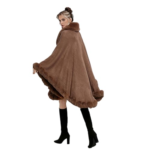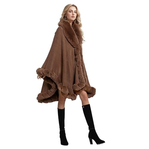 More information about Women Fur Collar Cape Thick Cardigan Coats Fall Winter Faux Fur Shawl Cloak for Dress Evening Party