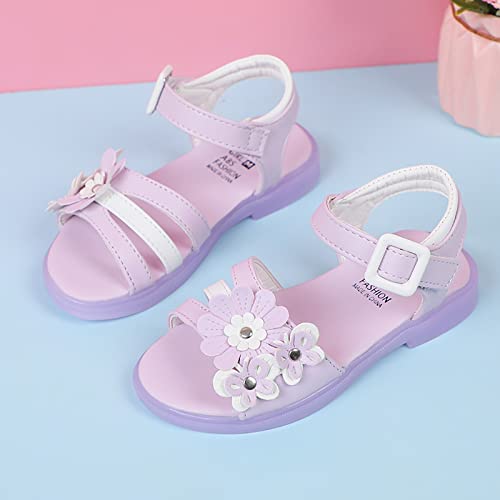Girls Sandals Girls Sandals Princess Shoes Bow Knot Children Open Toe Soft Sole Broken Flower Little Girls Tan Sandals (Purple, 33 Big Kids) 6