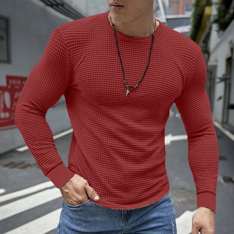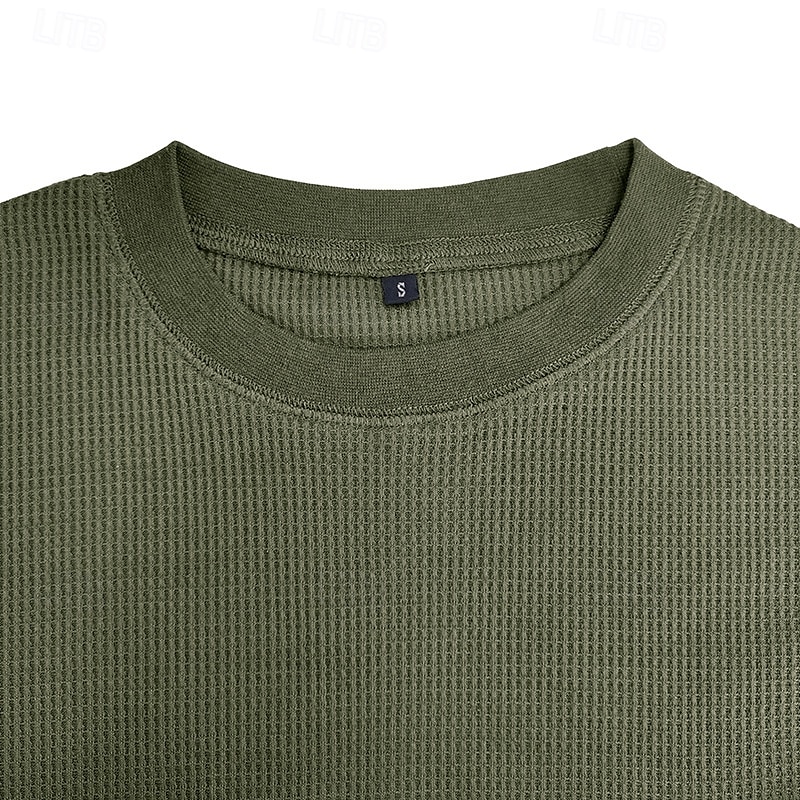 More information about Men's Waffle Shirt T Shirt Tee Top Long Sleeve Shirt Long Sleeve Crew Neck Spring & Fall Plain Fashion Designer Basic Vacation Street Going out Dark Grey Black White Top Tee for Men