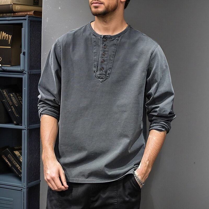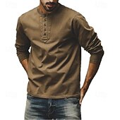 More information about Men's Henley Shirt Vintage Shirt Long Sleeve Retro Vintage Vintage Style Washed Henley Casual Spring & Fall Dark Brown Gray Henley T-Shirt