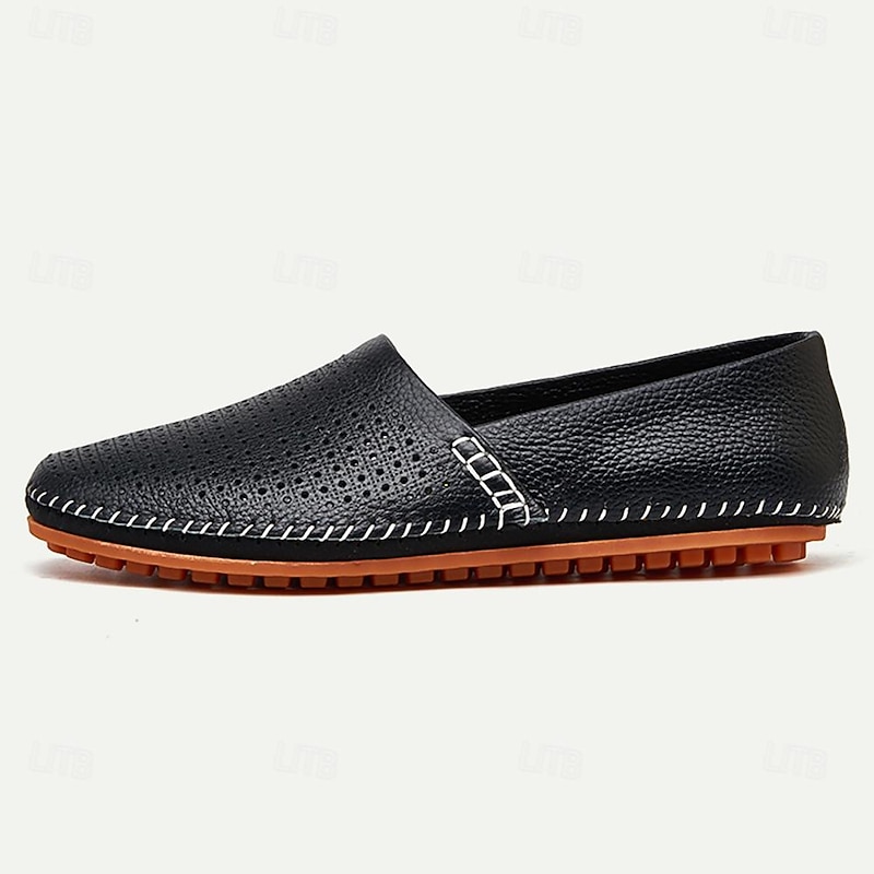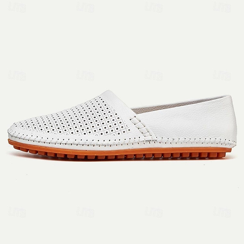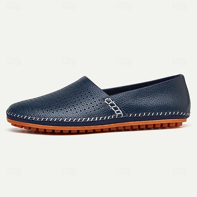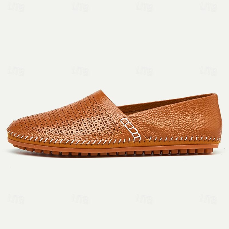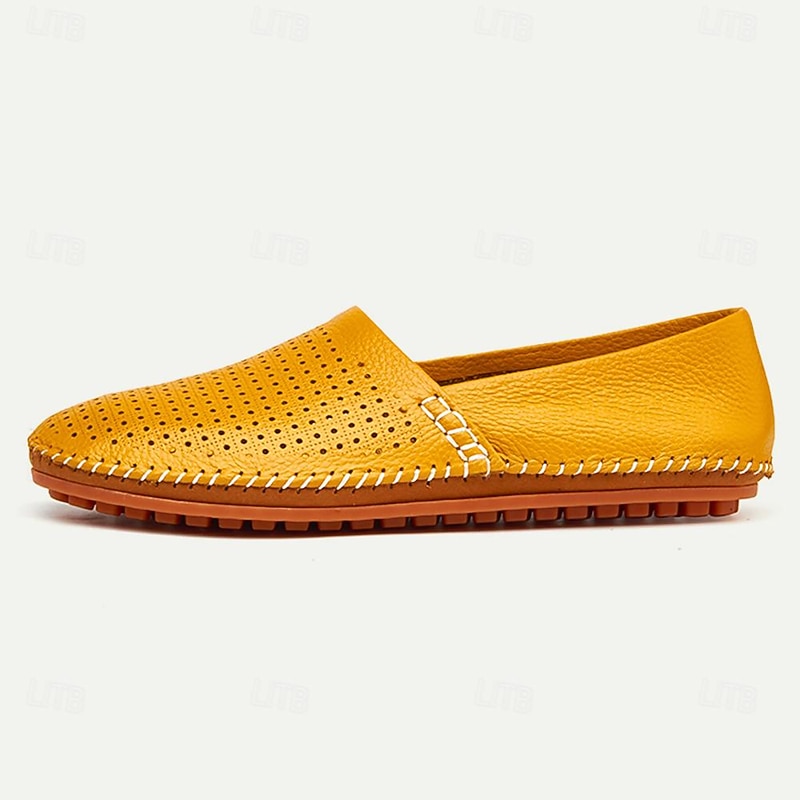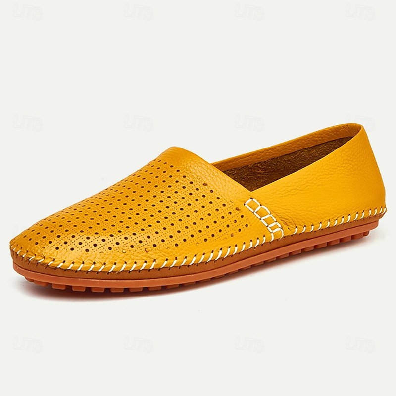HOT ! Men's Yellow Perforated Leather Slip-On Loafers with Hand-Stitched Detailing - Casual Breathable Driving Shoes for Summer