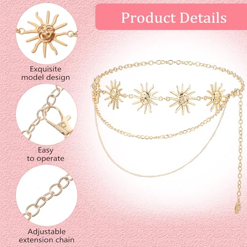 Western Chain Belt for Women, Sun Boho Gold Waist Belt, Multi-layere Tassel Waist Chain Belts,Waists Jewelry for Women Dress Jeans Festival Outfits Prom 3