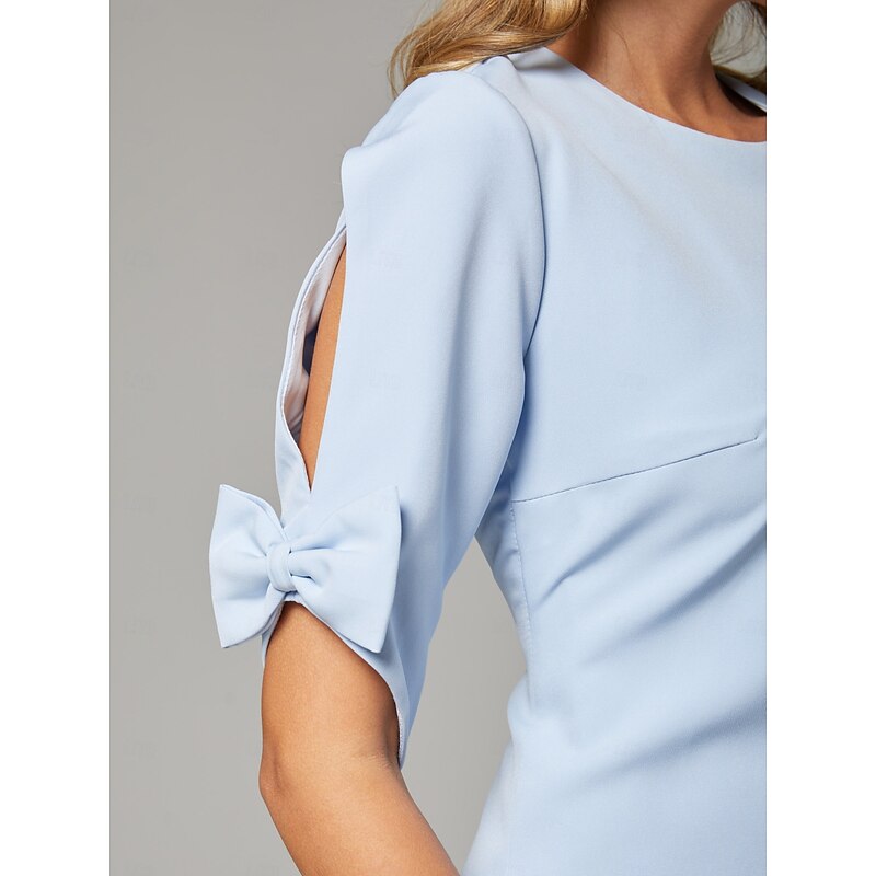 More information about Sheath / Column Mother of the Bride Dress Elegant Simple Jewel Neck Short / Mini Chiffon Short Sleeve with Bow(s) Solid Color Dresses