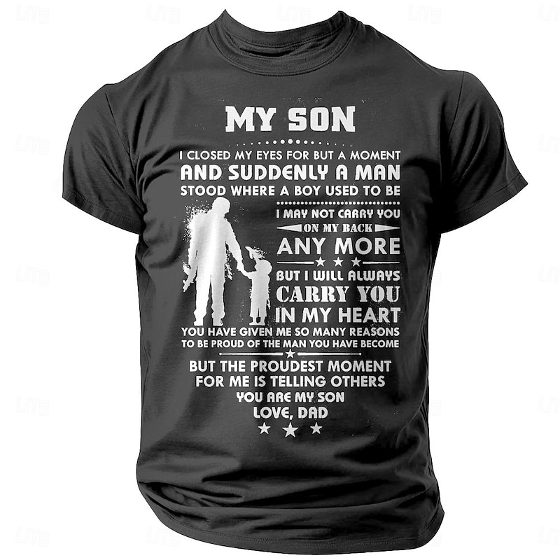 Men's Graphic Short Sleeve T-Shirt: 'My Son, Love Dad' Proud Father Message Tee, Sentimental Family Gift