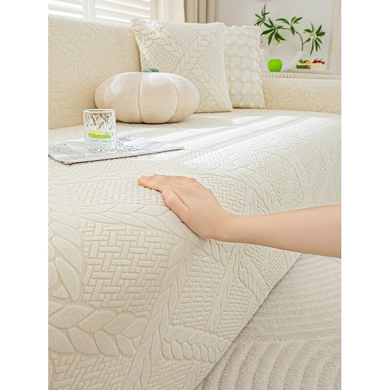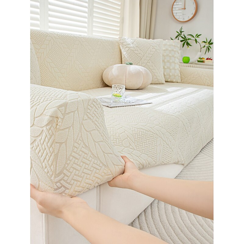 HOT ! 1 Piece Geometric Line Jacquard Velvet Sofa Cover, Simple Style Elastic Fitted Couch Slipcover, Pet-Friendly, Anti-Slip, Dustproof, Machine Washable, All-Season Sofa Protector