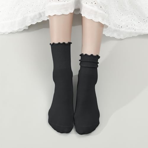 • ✅ MATERIAL - The black frilly socks are made of 65% cotton 30% polyester 5% elastane, the material is soft, comfortable and breathable, not easy to be deformed by washing and not tight for long time wearing, providing a refreshing feeling all day long