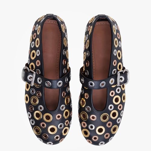 Fashion Buckle Ballet Flats Women's Delicate Metal Buckle with Rivet Holes Mary Jane Comfort Flats 6